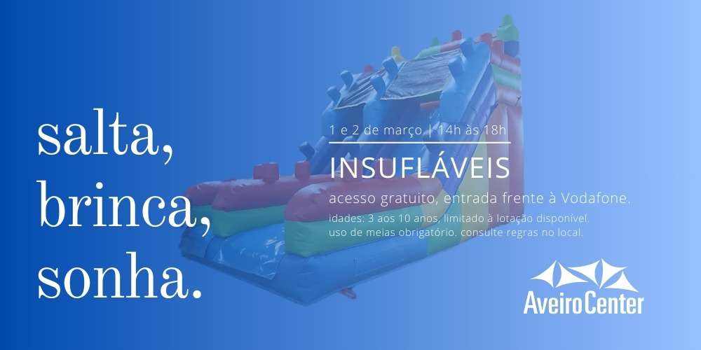 Verão aos saltos - insufláveis com acesso gratuito no Aveiro Center nos dias 15, 16 e 17 de agosto de 2025.